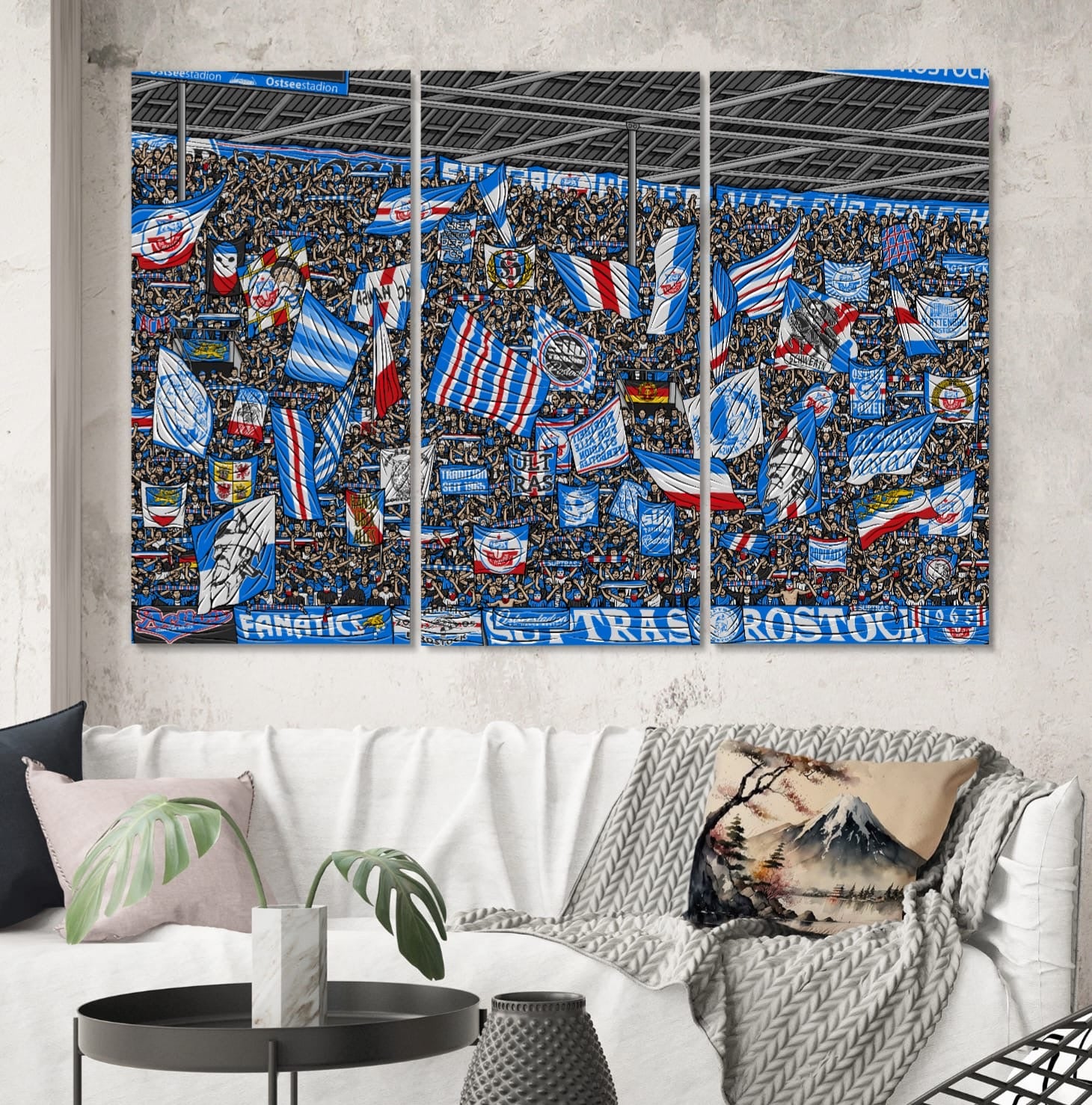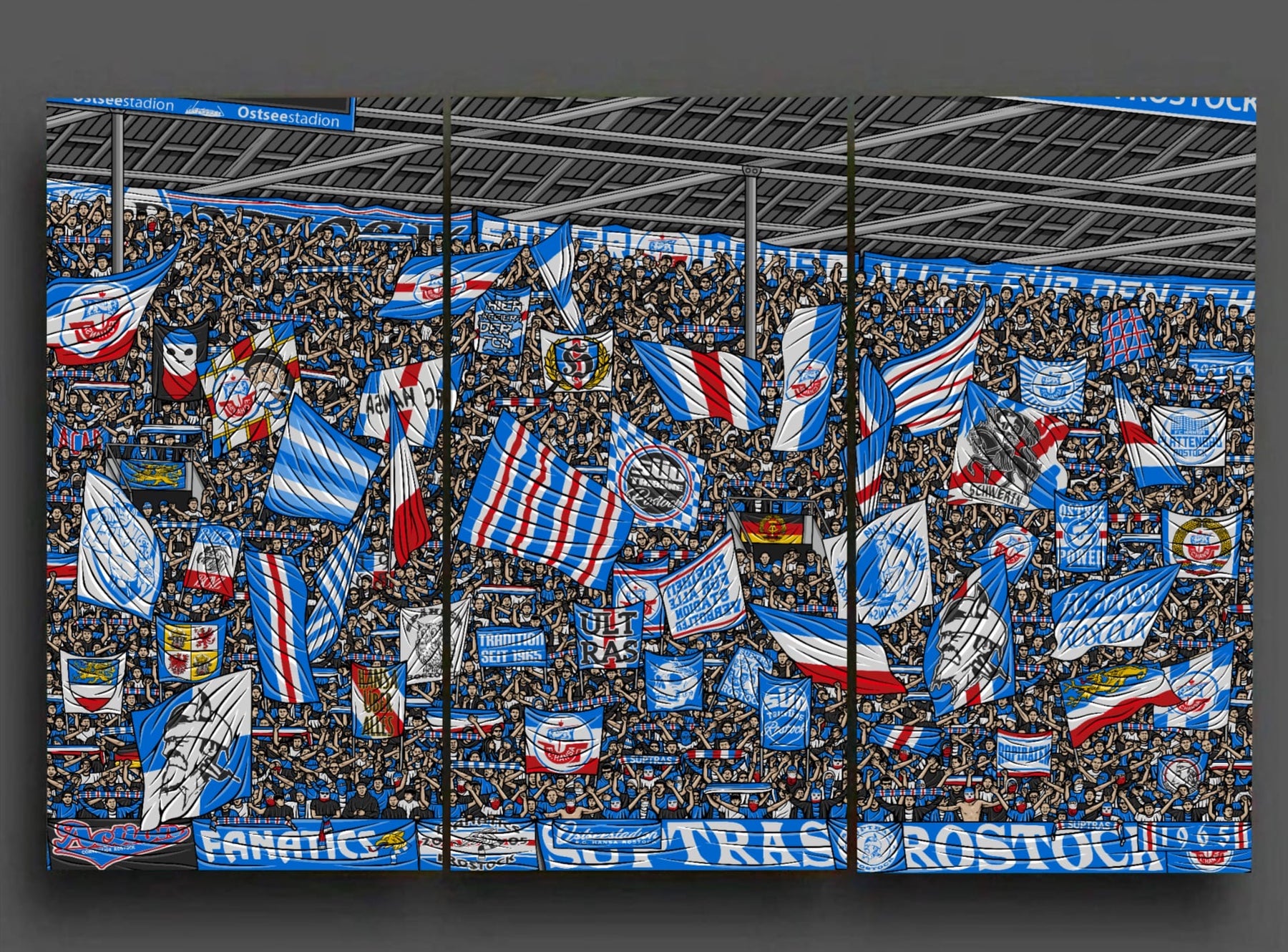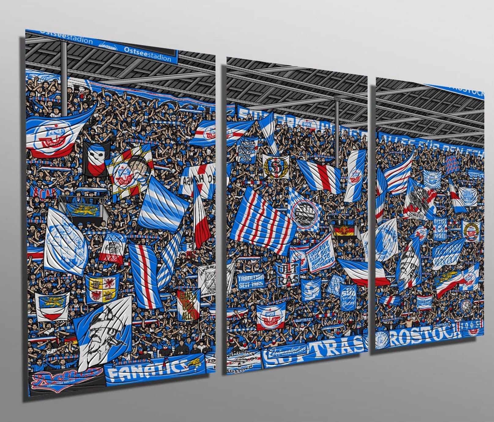 Das ausverkaufte Rostock Leinwandbild "Supporter" gibt es jetzt nochmal als Dreiteiler. 3x 80x40 cm . Die Lieferung der Bilder erfolgt fertig aufgespannt.